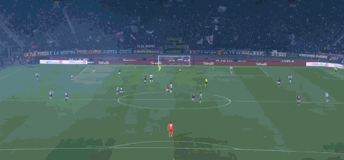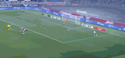 第45分钟,差一点,奥尔索利尼直塞,佐尔泰亚射门击中横梁弹出